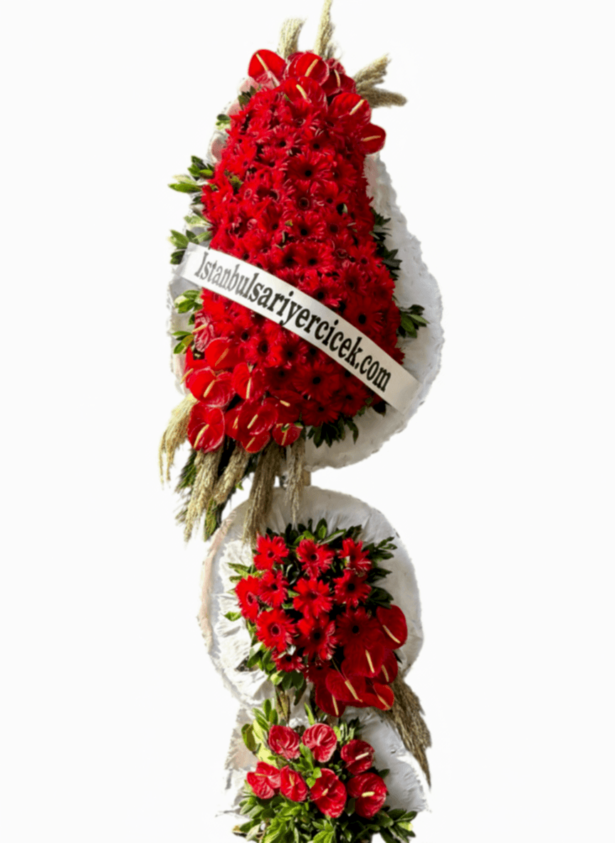 İki Kat Yoğun Beyaz Dairesel Zemin Üzerine Yoğun Kırmızı Çiçek Dizilimi!